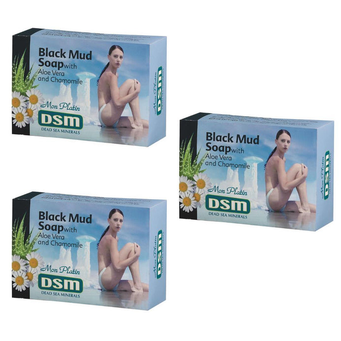 x3 Mon Platin DSM Dead Sea Minerals Black Mud Soap Aloe Vera Chamomile 125gr