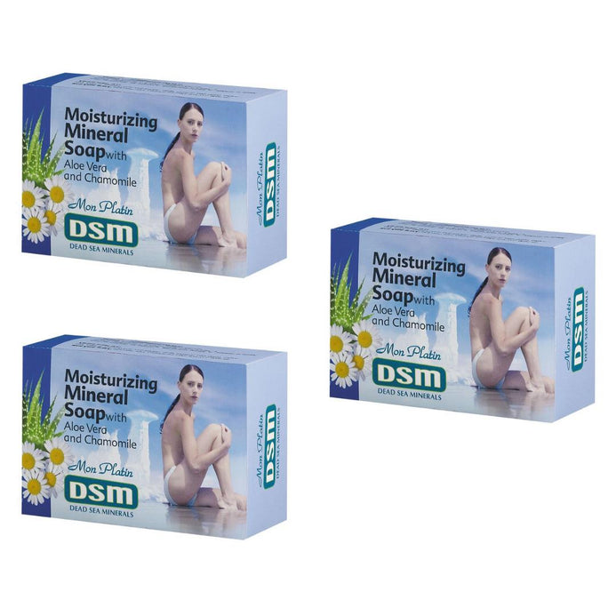 x3 Mon Platin DSM Dead Sea Minerals Moisturizing Soap Aloe Vera Chamomile 125gr