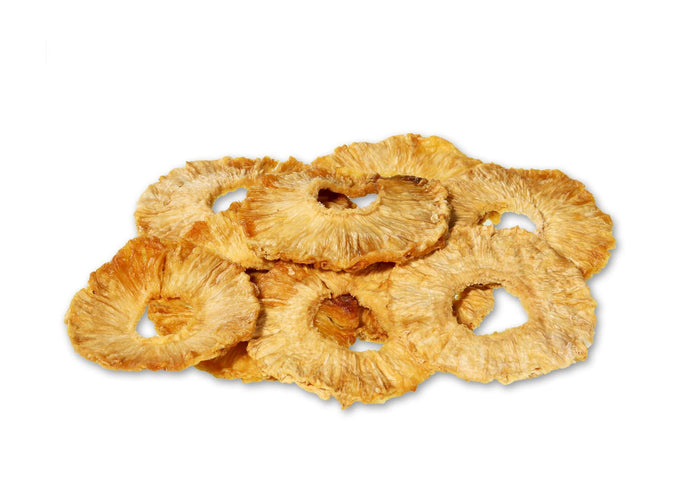 Dried organic pineapple is a delicious and healthy snack. Grown pesticide and chemical free, these all natural organic pineapple slices contain no added sweeteners or preservatives. They are an excellent source of dietary fiber, enzymes, and antioxidants and provide a major health boost.
