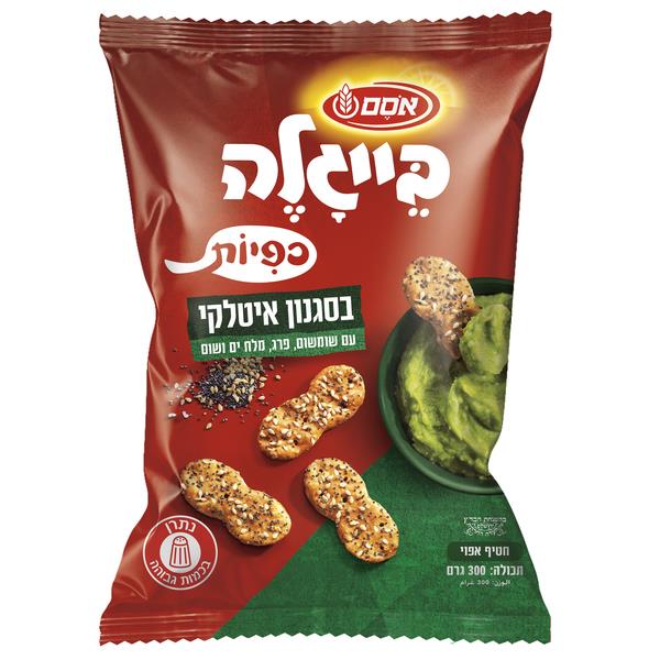 A baked snack for the whole family. In 2011, Beigale Osem launched a new series of products in red packages displaying an optimistic smiley face.