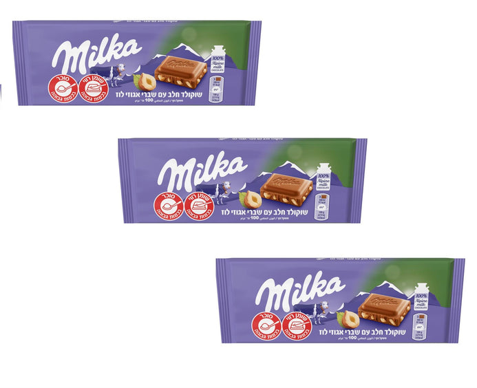 3x Milka Milk Chocolate with Hazelnuts Snack Bar Kosher Dairy 100g
