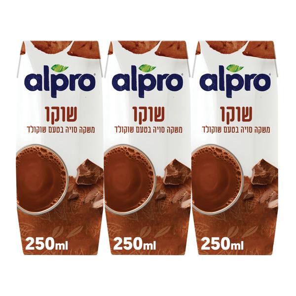 3x Alpro Soya Chocolate Flavored Long Life Drink Kosher Product 250ml