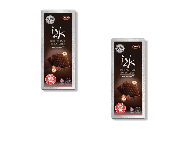 2 X Ego Bittersweet Chocolate & Hazelnuts 70% Cocoa Kosher No Sugar 100g