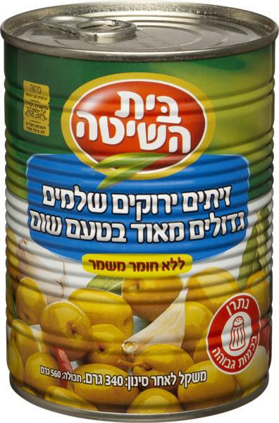 XL Whole Green Olives in Brine Garlic Flavor Bet Hashita Kosher Israel 560g