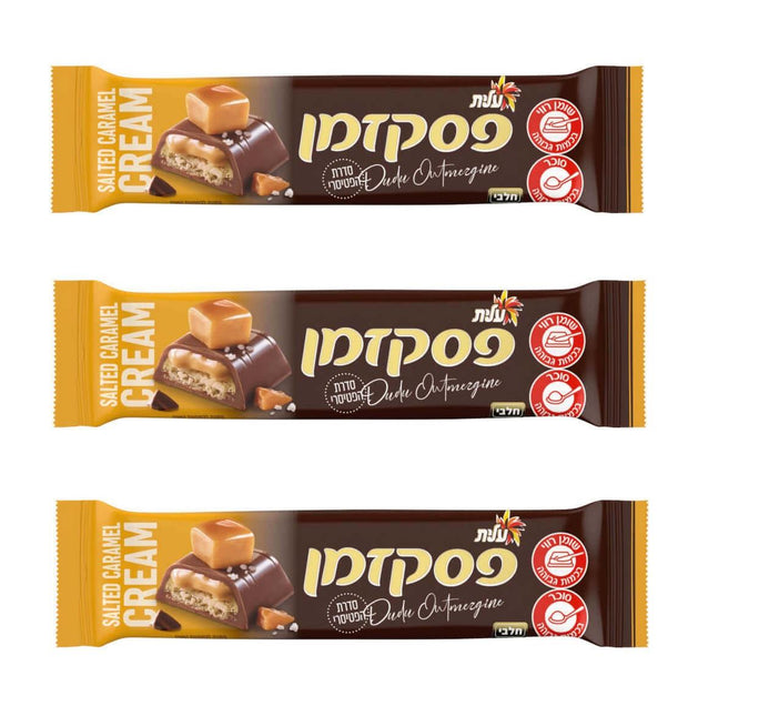 3X Pesek Zman Coated Chocolate Waffle With Salted Caramel Cream Kosher 35g