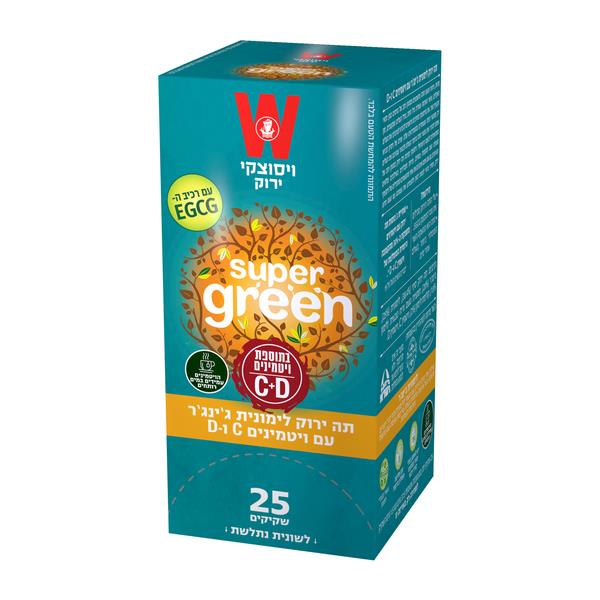 Wissotzky Super Green Tea Lemon Ginger Infusion With Vitamins Kosher 25 Bags