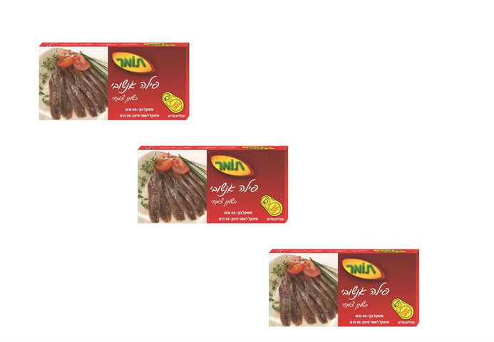 3X Flat Anchovy fillets In Vegetable Oil Kosher Certified By Tomer 45g