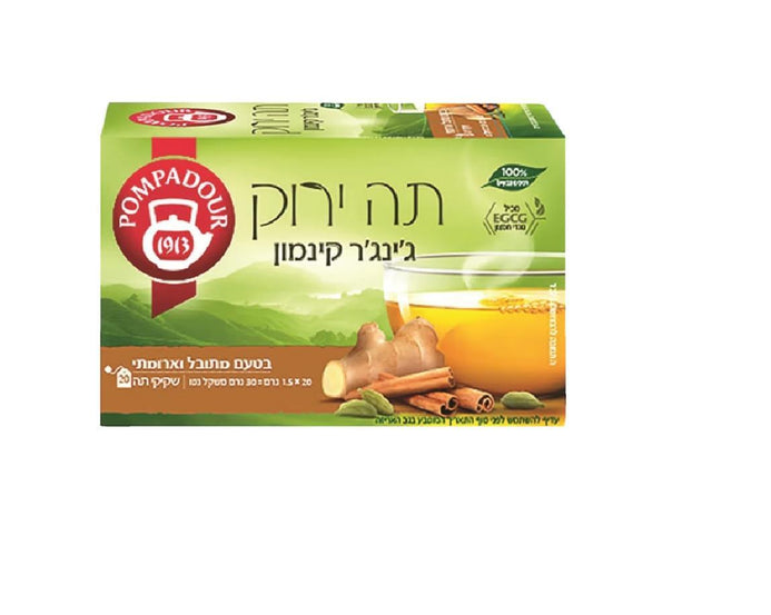 Pompadour Green Tea Ginger Cinnamon Kosher Product Hot Beverage 20 Bags