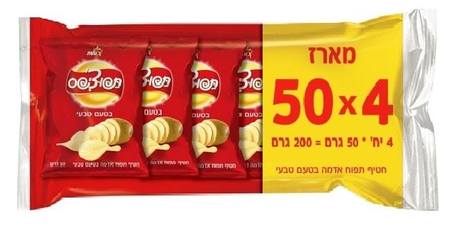 Elite Israeli Crunchy Salty Chips Snack Kosher Flavored Original Taste 4x 50 gr