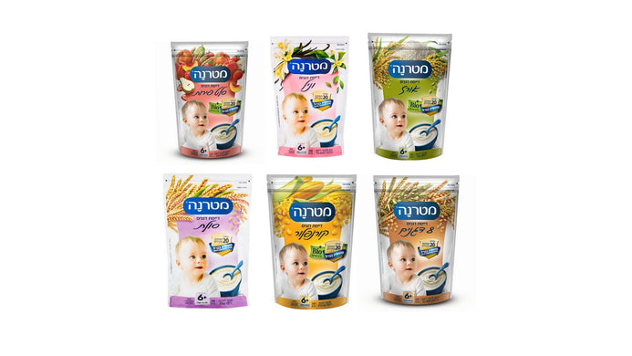 Materna’s porridges contain grains that contribute to a feeling of fullness and are available in a variety of flavors. Adding porridge to the breast-milk substitute or to breast milk is a convenient and easy way of introducing to the infant a variety of new tastes and textures and facilitates the gradual transition from liquids to solid foods by offering the infant a thicker porridge with a spoon. Materna porridges also contain probiotics that help enhance natural protection.