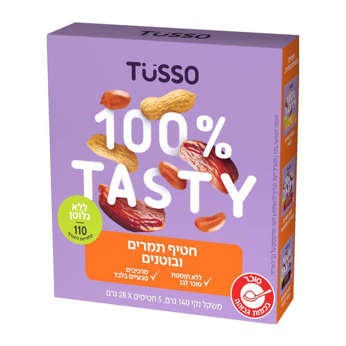 Tusso 100% Tasty Dates & Peanuts Chips Snack Bar Kosher Gluten Free 28gx5