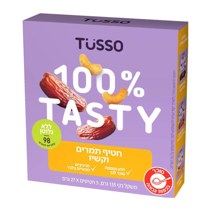 Tusso 100% Tasty Dates & Cashew Chips Snack Bar Kosher Gluten Free 27gx5