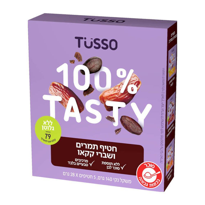 Tusso 100% Tasty Date Snack & Cocoa Chips Snack Bar Kosher 28gx5