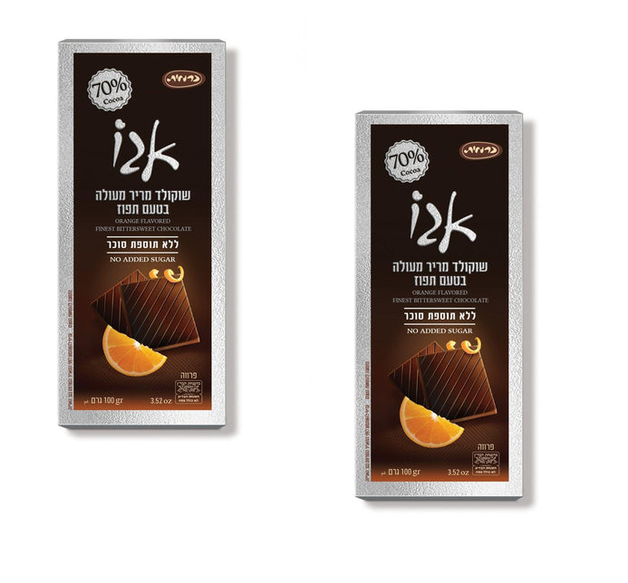 2 X Orange Flavored Finest Bittersweet Chocolate 70% Kosher No Sugar 100g