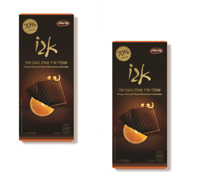 2 X Orange Flavored Finest Bittersweet Chocolate 70% Cocoa Kosher 100g