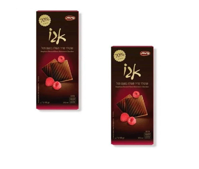 2 X Raspberry Flavored Finest Bittersweet Chocolate 70% Cocoa Kosher 100g