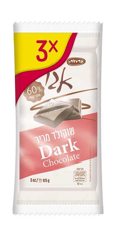 Pack of 3 X Dark Chocolate 60% Cocoa Kosher Ego By Carmit Israel 3X85g