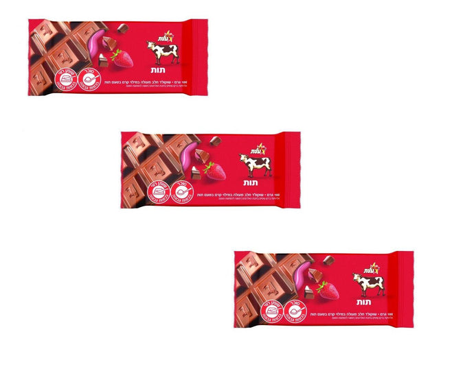 3 X Milk Chocolate Bar with Strawberry Cream Filling Kosher By Elite Israel 3X100g
