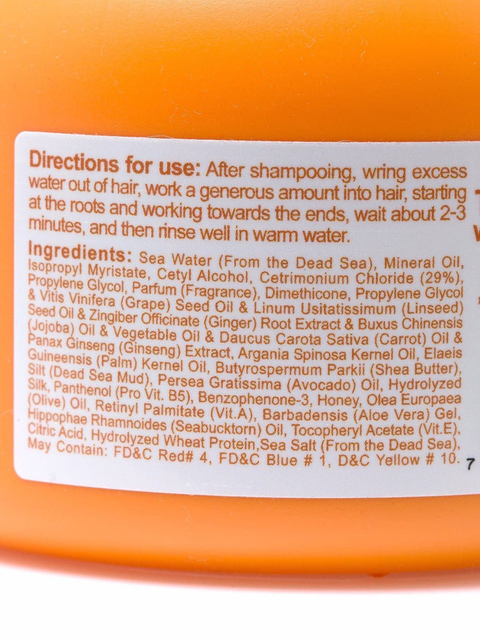 This hair mask is enriched with minerals from the Dead Sea and a high concentration of Obliphicha (Sea Buckthorn) oil. The Obliphicha bush is originated in Russia and is well known for its unique benefits. This hair mask contains sun radiation filters, Vitamins B5 &E, Carrot oil and Shea Butter. This rich hair mask treats hair damages, caused by excessive chemical treatments in hair styling, protects from harmful environmental conditions. Furthermore, it repairs split ends and prevents color fading.