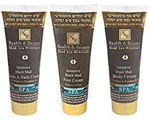 Intensive Black Mud Body Cream 200ml A powerful and particularly rich body cream, enriched with Black Mud from the Dead Sea, plus essential minerals, herbal extracts and medicinal oils such as: Aloe Vera, Olive Oil, Shea Butter, Argan Oil, Sea Buckthorn Oil, tea tree oil extract, calendula, lavender oil, coconut oil, and Pro - Vitamin B5 + E. The Black Mud is enriched with magnesium, calcium, potassium, sodium and iron, which are highly essential to maintain a healthy skin. The Mud's qualities were proved to have the ability to relieve irritation, dryness, roughness, redness and cracks. Intensive Black Mud Hands & Nails Cream 200ml A powerful and particularly rich hands and nails cream, enriched with Black Mud from the Dead Sea, plus essential minerals, herbal extracts and medicinal oils such as: Aloe Vera, Olive Oil, Shea Butter, Argan Oil, Sea Buckthorn Oil, tea tree oil extract, calendula, lavender oil, coconut oil, and Pro - Vitamin B5 + E. The Black Mud is enriched with magnesium, calcium, potassium, sodium and iron, which are highly essential to maintain a healthy skin. The Mud's qualities were proved to have the ability to relieve irritation, dryness, roughness, redness and cracks. With Regular use, the results will be seen quickly and be reflected in a supple, soft and velvety skin. Intensive Black Mud Foot Cream 200ml A powerful and particularly rich Foot cream, enriched with Dead Sea mud plus 26 essential minerals, herbal extracts and medicinal oils such as aloe vera extract, olive oil, shea butter, Argan oil, Sea Buckthorn oil, tea tree oil, lavender oil extract, calendula, coconut oil, and pro - vitamin B5 + E. The black mud is enriched with magnesium, calcium, potassium, sodium and iron, which are essential to maintain a healthy skin. Its holistic benefits were proved to have the ability to relieve irritation, dryness, roughness, redness and cracks.