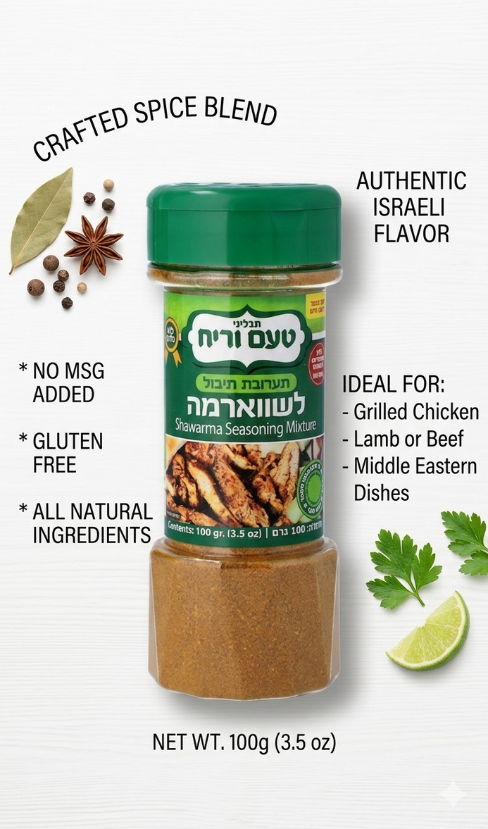 Shawarma Seasoning Mix – Ta'am V'Reach Israeli Spice Blend – Authentic Middle Eastern Shawarma Spice – No MSG – 100g
