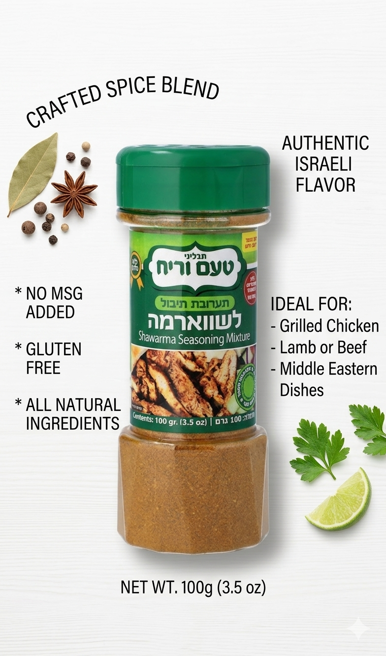 Traditional Israeli shawarma seasoning blend perfect for chicken, turkey, beef, and grilled meats.
