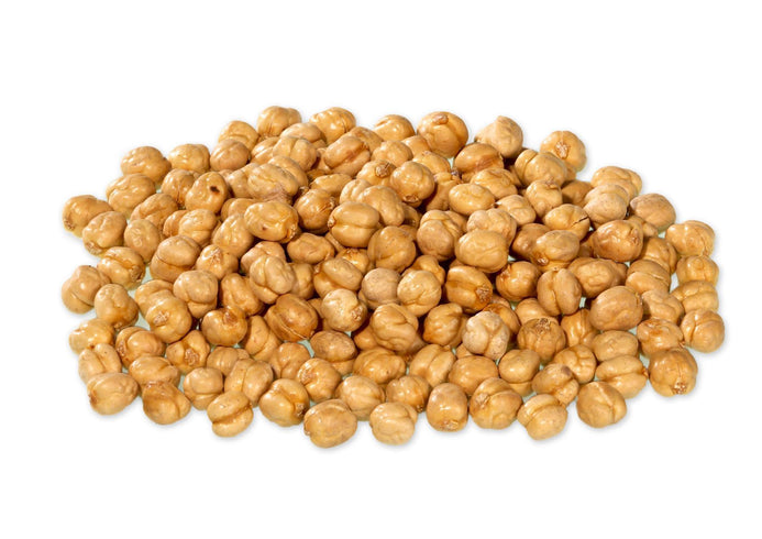 Chickpeas, also known as garbanzo beans, are a lovable legume with a mild nut-like taste and a great deal of culinary versatility. Traditionally loved by vegetarians for their protein potency, chickpeas are also a great source of fiber. Our chickpeas are of superb quality and are expertly roasted for supreme snack-ability. Toss some roasted chickpeas into your favorite snack mix or salad.
