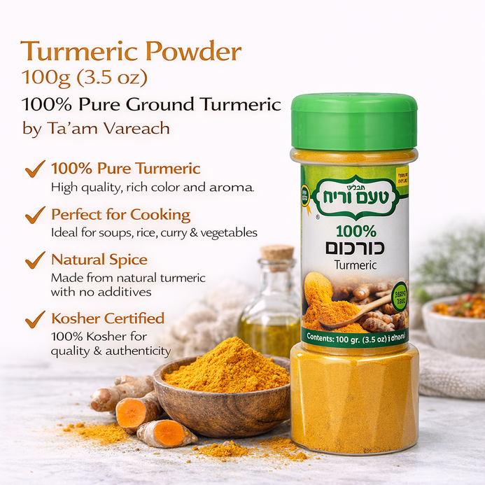 Turmeric Powder 100g (3.5 oz) – 100% Pure Ground Turmeric – Premium Spice by Ta’am Vareach – Kosher Certified
