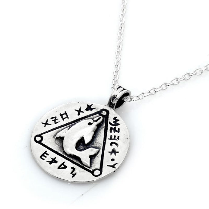 Sterling Silver Prosperity Amulet by Dan Raveh. Made in Israel Hand Crafted. Magnificent Silver Hand Crafted Prosperity Amulet. Made of sterling 925 silver. Supply with 60Cm silver plated chain. Brand New. Come in a gift box. According to the Kabalah, a person’s soul is created from twenty-two letters. Thus, each Jewish amulet and each attempt to help man through acceptance is accomplished with the help of letters. An Hebrew version that is 2,900 years old. These are the symbols used by Kings David and Solomon, The amulet used to assist people in their personal lives- provide people the focus and energy to pursue a dream, face a fear or accomplish a desired goal. They are what we make of them. ***Love and freedom*** Spiritual freedom and the ability to connect to one another in true love. Assists the wearer to think and act freely in accordance with his/her true self. Protects from social pressures and foreign influences. Also assists to love freely and sincerely. Unconditional love. Good also for people who want to express themselves easily and create good and healthy relationships with their friends and/or partner. the opposite tops of the triangles create the David star for protection. The dolphins create the yin-yang shape for balance.