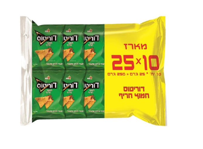 Doritos Pack Corn Snack Sour & Hot Flavored Kosher By Elite Israel 25gx10