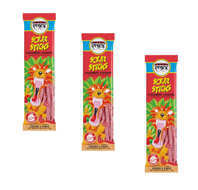 3x Paskesz Sour Sticks Strawberry Sweets Gummy Candies Kosher Weight 50g