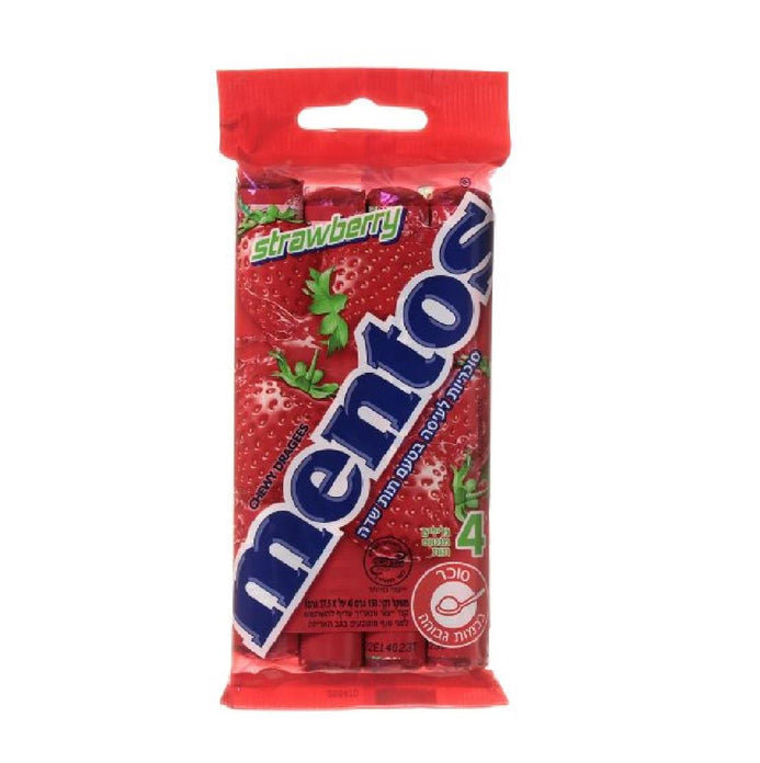 Pack of 4 Roll Mentos Chewy Dragees Kosher Strawberry Flavor 37.5gX4