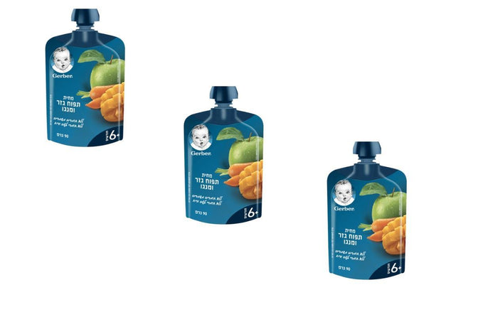 3x Gerber Pouches Apple Mango Carrot Puree Kosher +6 months 90g