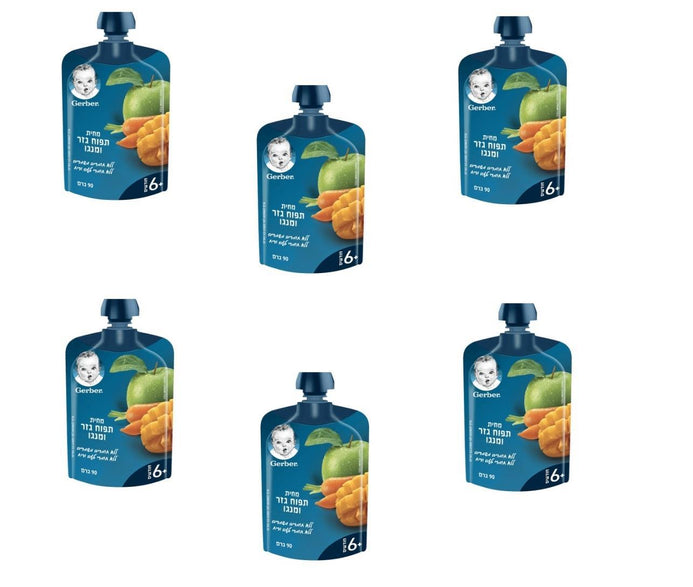 6x Gerber Pouches Apple Mango Carrot Puree Kosher +6 months 90g