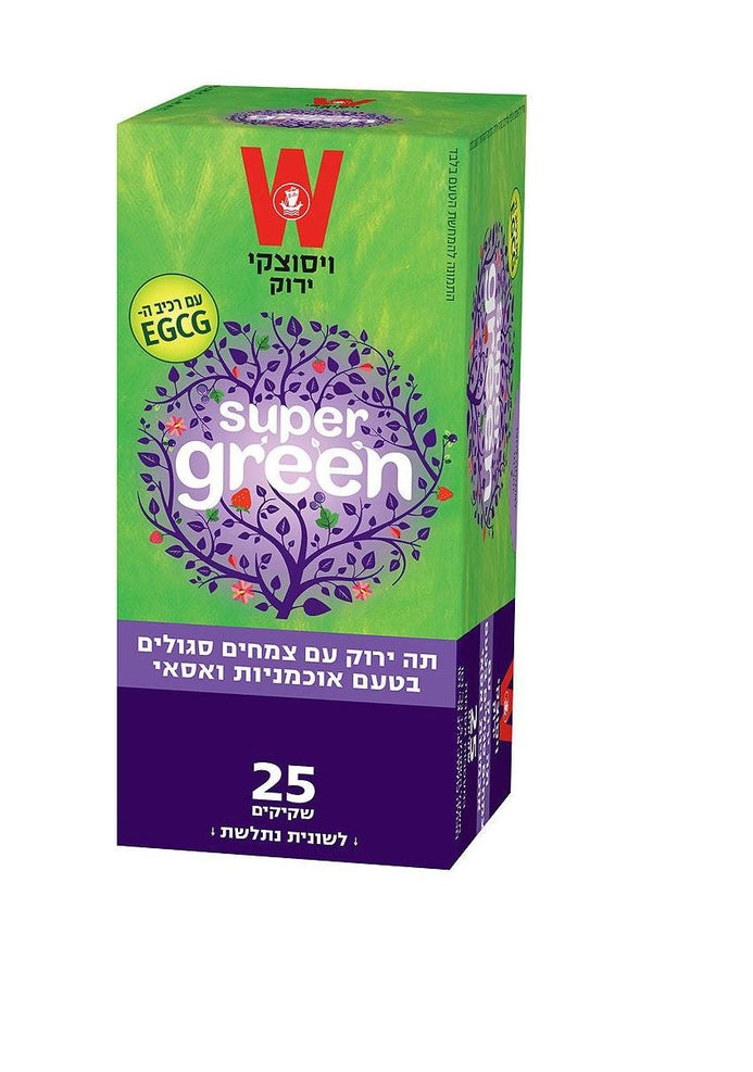Wissotzky Super Green Tea Purple Bluberry Acai Infusion Kosher Israel 25 Bags