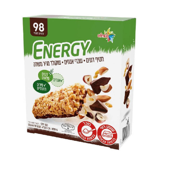Energy Cereals Nuts Bar Dark Chocolate Bottom Kosher Israeli Product 144g