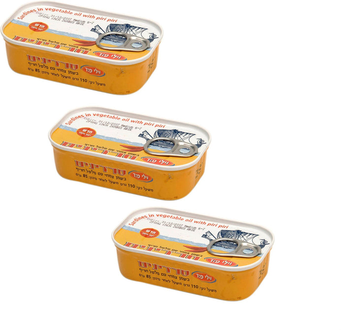 3X Sardines in Vegetable Oil with Piri Piri Kosher By Willi Food 110g