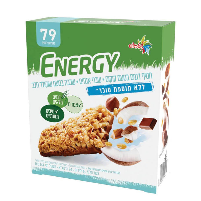 Energy Cereals Nuts & Coconut Bar with Milk Chocolate Bottom Kosher 144g