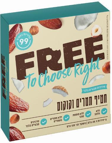 Free To Choose Right Cereal Snack With Dates & Coconut Kosher 25g X5