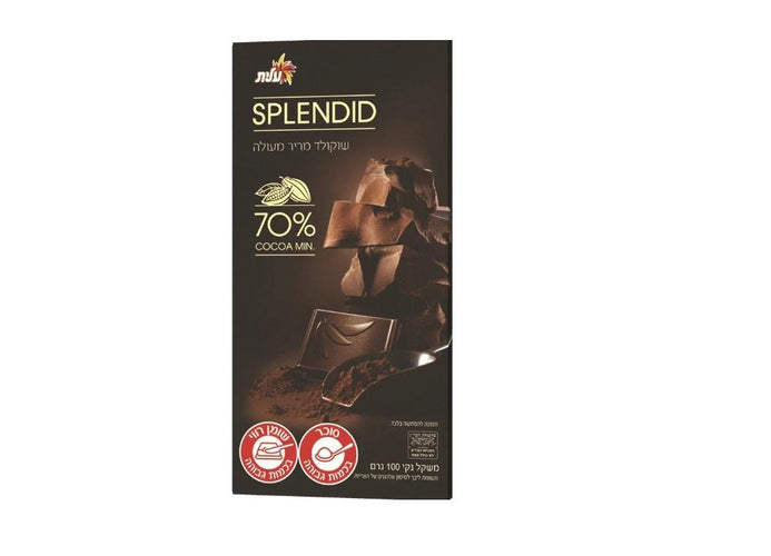Splendid Dark Chocolat Bar 70% Cocoa Min. Kosher Vegan By Elite Israel 100g