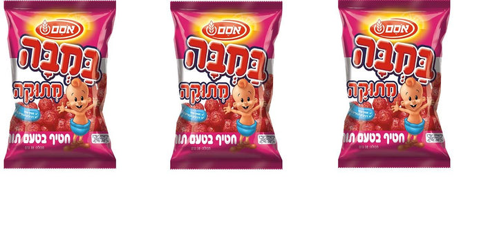 Sweet Bamba, also known as red Bamba, is a strawberry flavored snack that is suitable for those who want to eat Bamba but are allergic to peanuts. Strawberry Bamba contains all natural ingredients, with no preservatives, and its sweet and unique taste make it an unforgettable snack.